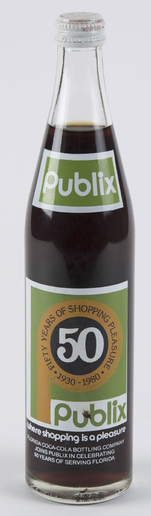 The number 50 was added to the company logo, and this design was used on signs and product packages. Many of Publix’s suppliers presented Publix with commemorative plaques, and the Coca-Cola company produced a special limited-edition bottle with the Publix anniversary label.
